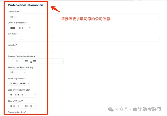 填写您的联系方式,请正确填写个人常用邮箱及联系电话,否则可能导致后续证书发放时无法与您取得联络。请按照要求填写您的公司信息。